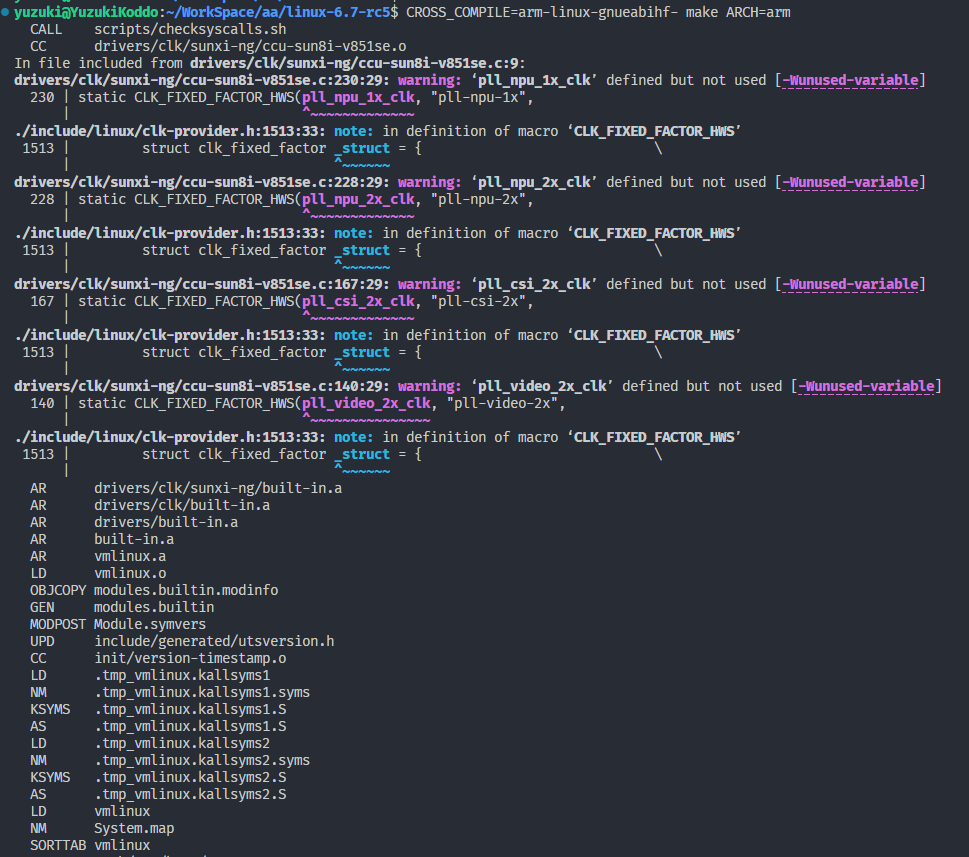 CROSS_COMPILE=arm-linux-gnueabihf- make ARCH=arm -j32正常编译
