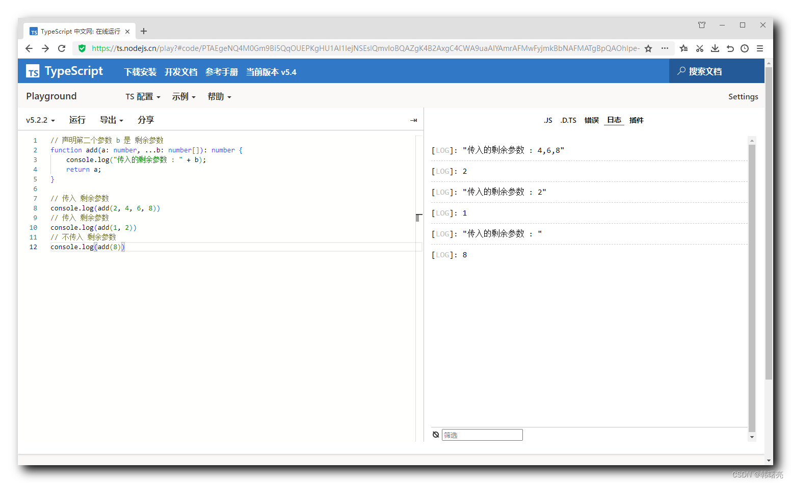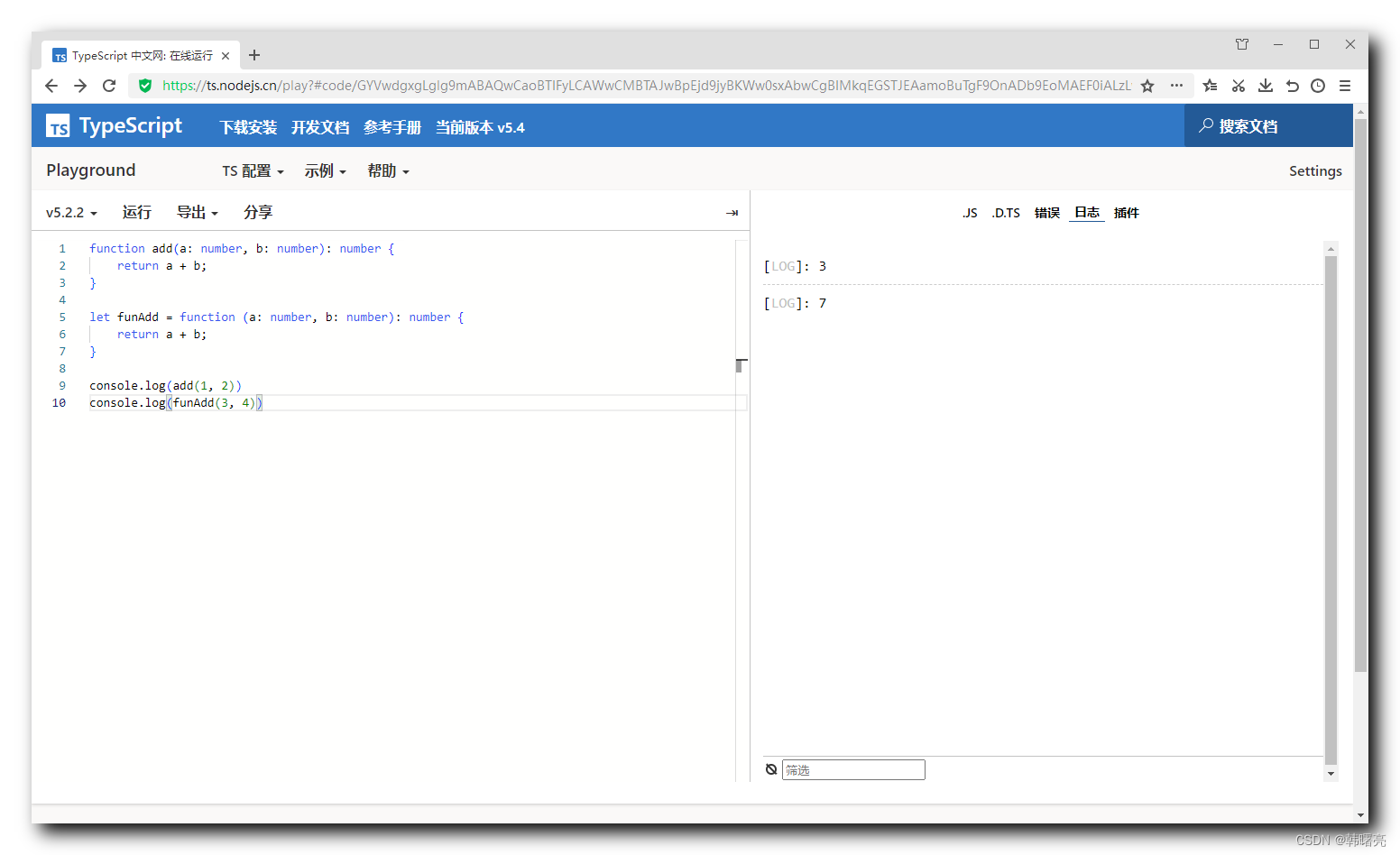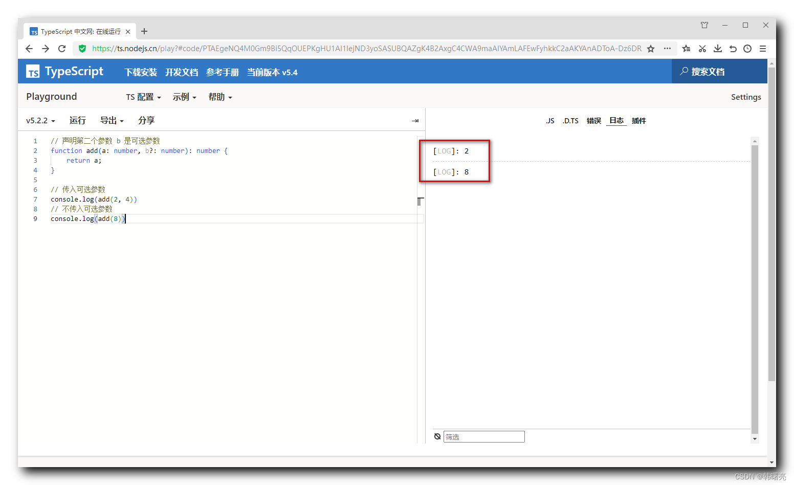 console.log(add(8))在 https://ts.nodejs.cn/play 中运行 TypeScript 代码 :