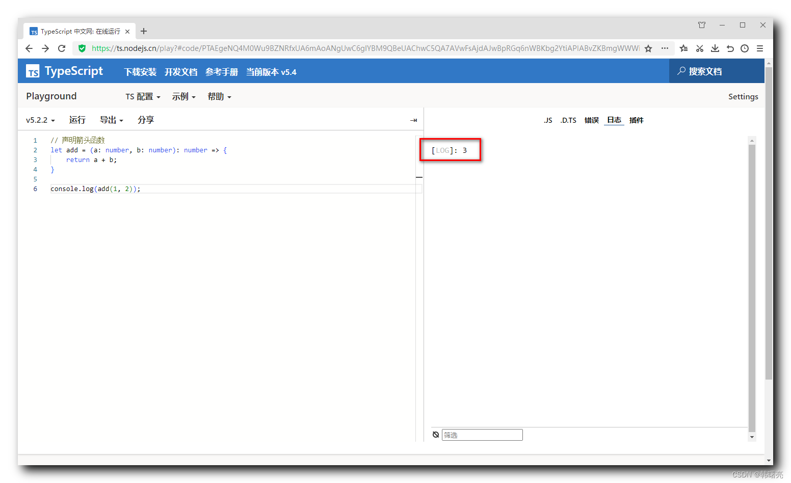 }在 https://ts.nodejs.cn/play 中运行 TypeScript 代码 :