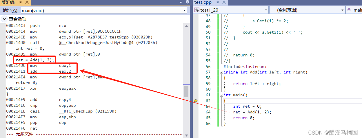 如果在上述函数前增加inline关键字将其改成内联函数,在编译期间编译器会用函数体替换函数的调用