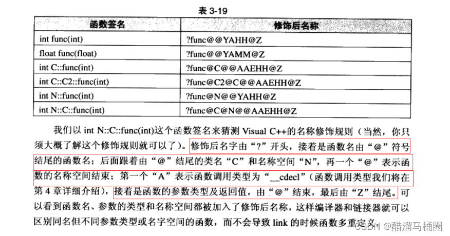 6. 通过这里就理解了C语言没办法支持重载,因为同名函数没办法区分。而C++是通过函数修饰规则来区分,只要参数不同,修饰出来的名字就不一样,就支持了重载