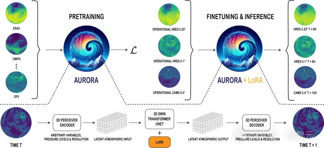 通过对大量不同数据的预训练和对特定任务的微调,Aurora学会了捕捉大气中错综复杂的模式和结构,使其在针对特定任务进行微调时,即使训练数据有限也能表现出色。