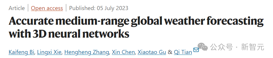 随后,中国科学家提出的「Pangu-Weather」模型,直接登上了Nature。
