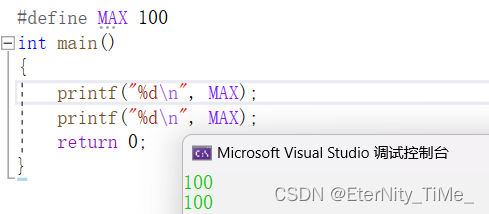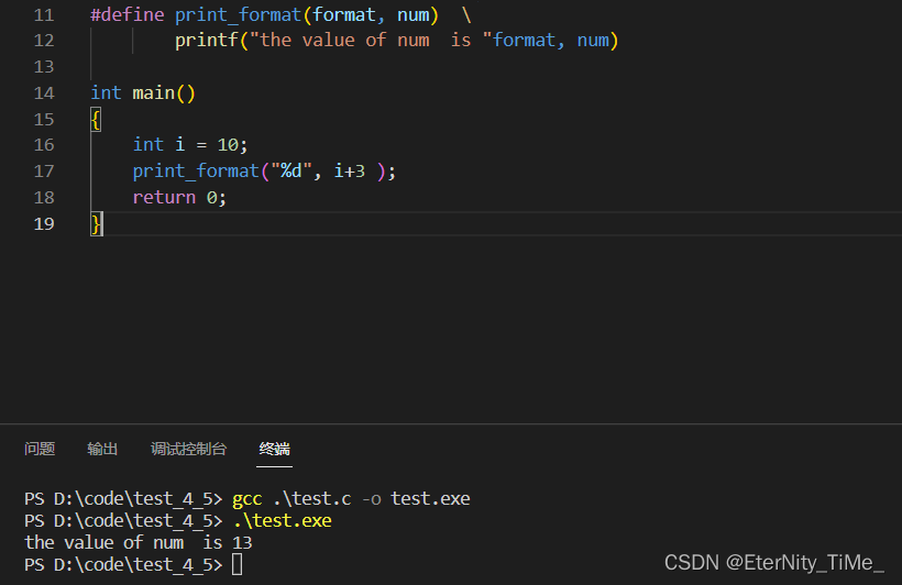 #define MAX 1000 #define reg register //为 register这个关键字,创建一个简短的名字 #define do_forever for(; ; ) //用更形象的符号来替换一种实现 #define CASE break;case //在写case语句的时候自动把 break写上。 // 如果定义的 stuff过长,可以分成几行写,除了最后一行外,每行的后面都加一个反斜杠(续行符)。 #define DEBUG_PRINT printf(“file:%s\tline:%d\t \ date:%s\ttime:%s\n” ,\ FILE,LINE , \ DATE,TIME )