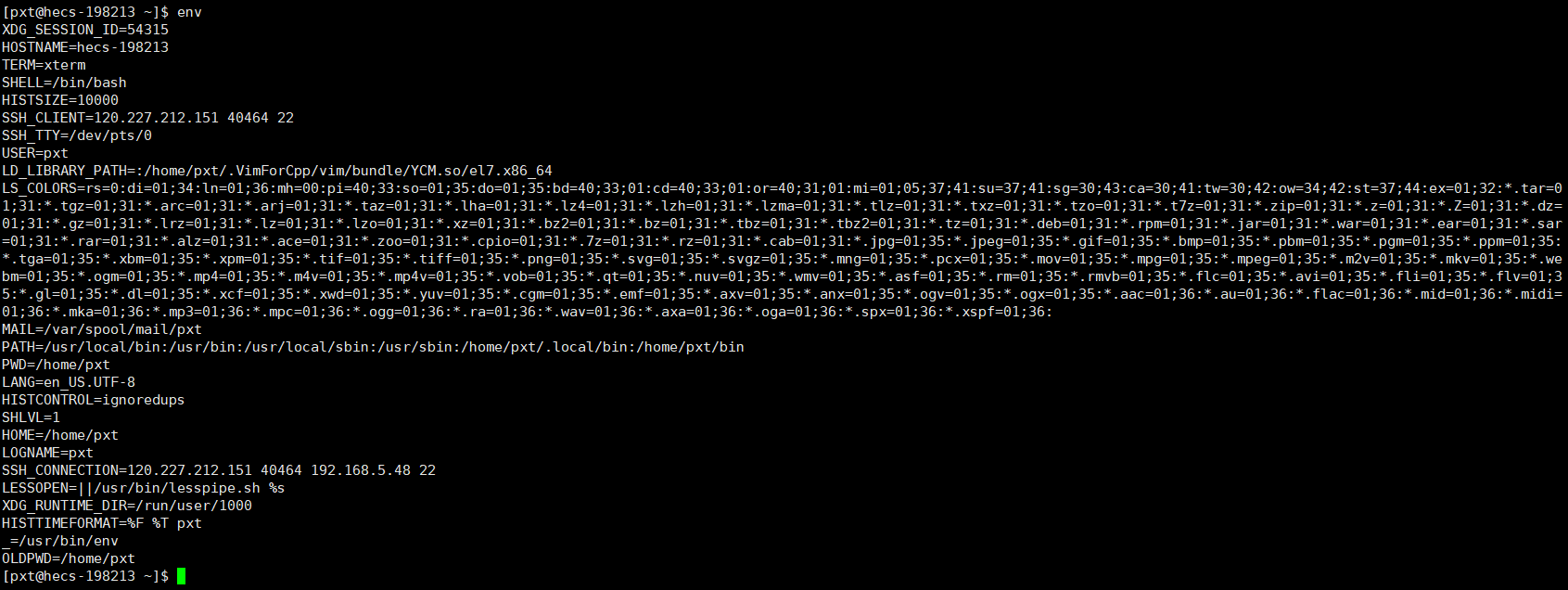 在Linux中环境变量有很多,我们可以使用指令来查看所有环境变量 指令: