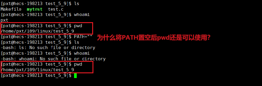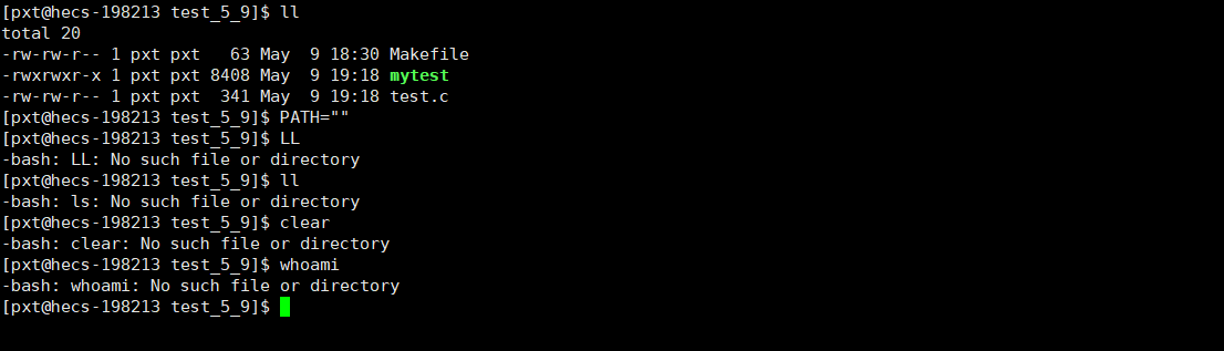 我们在之前就提到过,bash中的指令可以直接使用,不用加./是因为存在环境变量PATH,所以我PATH置空后,这些命令就会失效