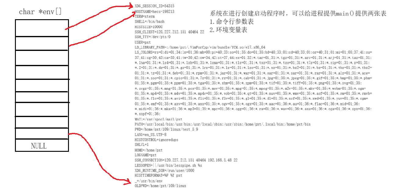 在我们查看环境变量时,其实他也是一个类似于命令行参数表的