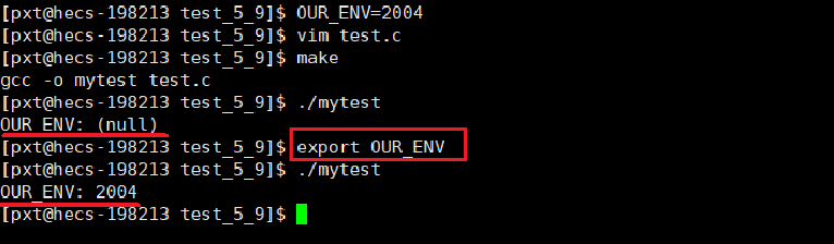 printf("OUR_ENV: %s\n",getenv("OUR_ENV"));