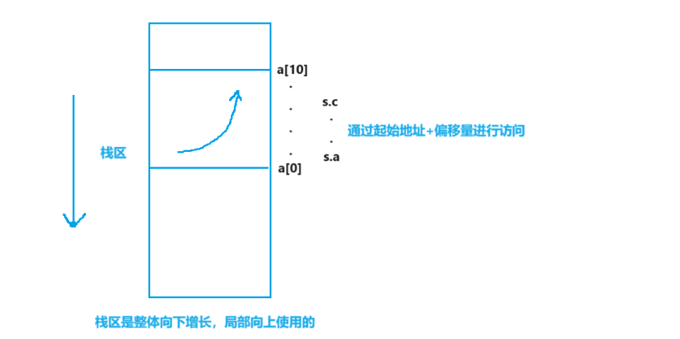 注意:栈区是整体向下增长,局部想上使用的,就是地址最低处,依次往上放后面的元素