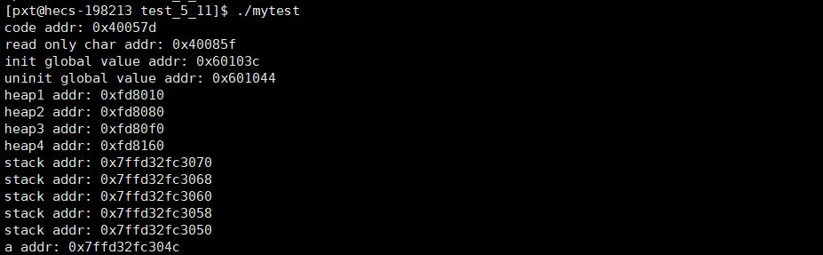 28 printf("stack addr: %p\n", &heap1); 29 printf("stack addr: %p\n", &heap2); 30 printf("stack addr: %p\n", &heap3);