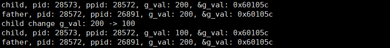 32 printf("father, pid: %d, ppid: %d, g_val: %d, &g_val: %p\n", getpid(), getppid(), g_val, &g_val);
