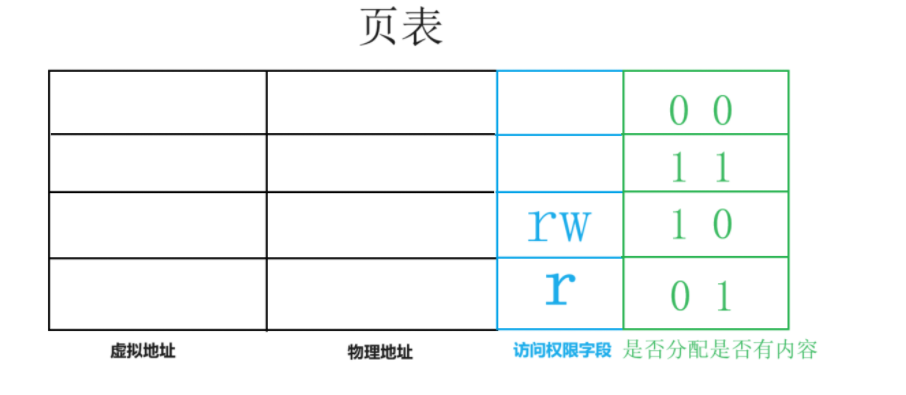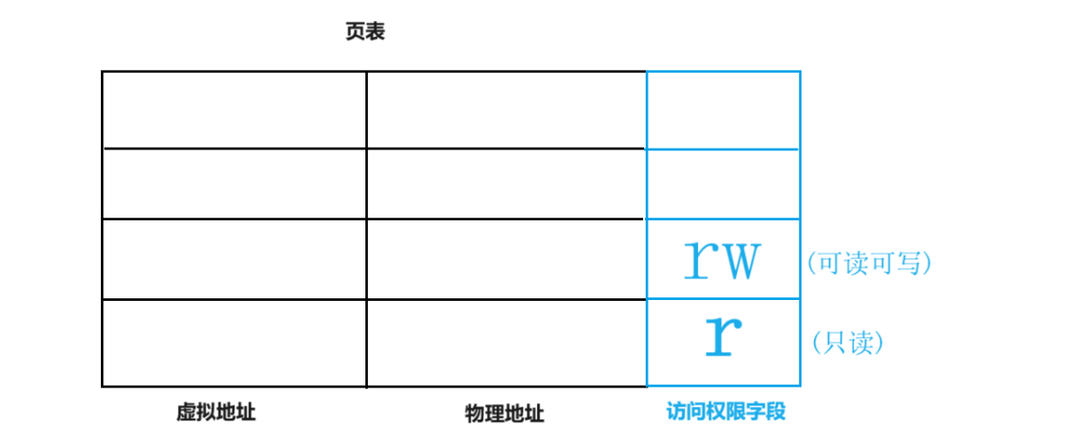 在上面我们了解到了页表,页表的映射关系中左侧表示虚拟地址,右侧表示物理地址,但是除了这两个其实在页表的映射关系中还存在一个标记字段——访问权限字段