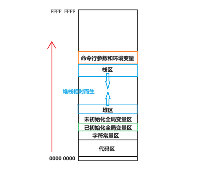 我们在学习C语言的时候,大家都了解过这样的空间布局图