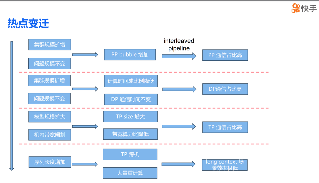 本文整理自快手 AI 平台大模型训练负责人刘育良在 QCon 2024 北京的分享“ 超大规模集群下大语言模型训练的最佳实践”。演讲结合在快手超算集群上的大模型训练经验,阐述大模型训练在超大规模集群下遇到的挑战和热点问题的演变,以及对应的解决方案。同时,针对最具挑战的超长文本场景,进行案例分析。最后,根据未来大模型的发展趋势,对训练领域的技术探索方向进行探讨。