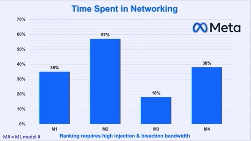 之前 Meta 也有过一个统计,在 AI 训练中网络通信时长占比平均占据了 35% 的时间(最高时 57%),一个直观的解释是:这等于花费数百万或数十亿美元购买的 GPU 有 35% 的时间是无所事事的。