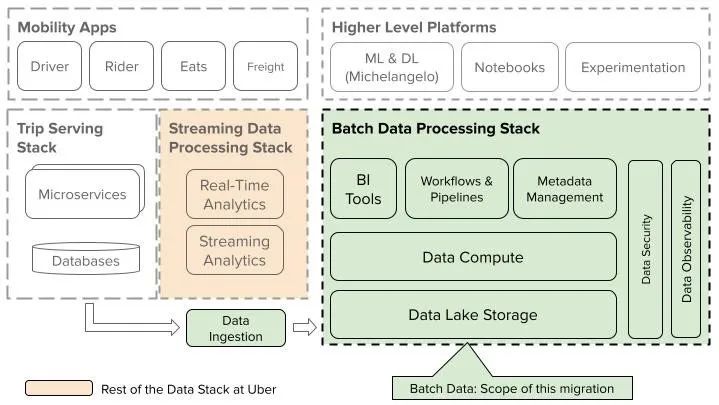 迁移前和迁移后的优步批数据技术栈(图片来源:优步博客)