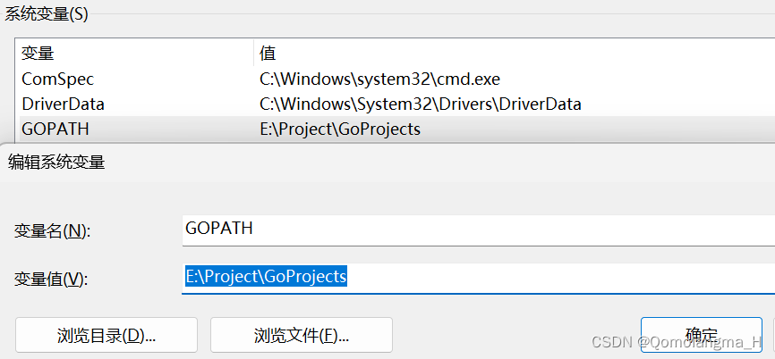 同时添加系统变量GOPATH、GOROOT(go安装目录)