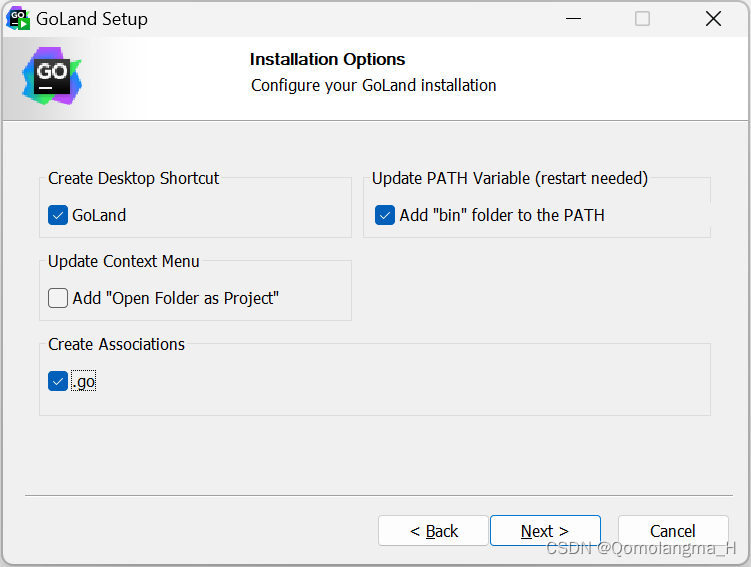 若完全遵从本文Go环境变量的配置方法,应选择2. 直接安装