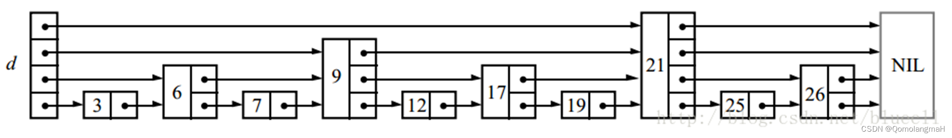 } SkipListNode; SkipListNode表示跳表中的节点,包含一个整型的键值key和一个整型的值value,以及一个指向其他节点的指针数组forward