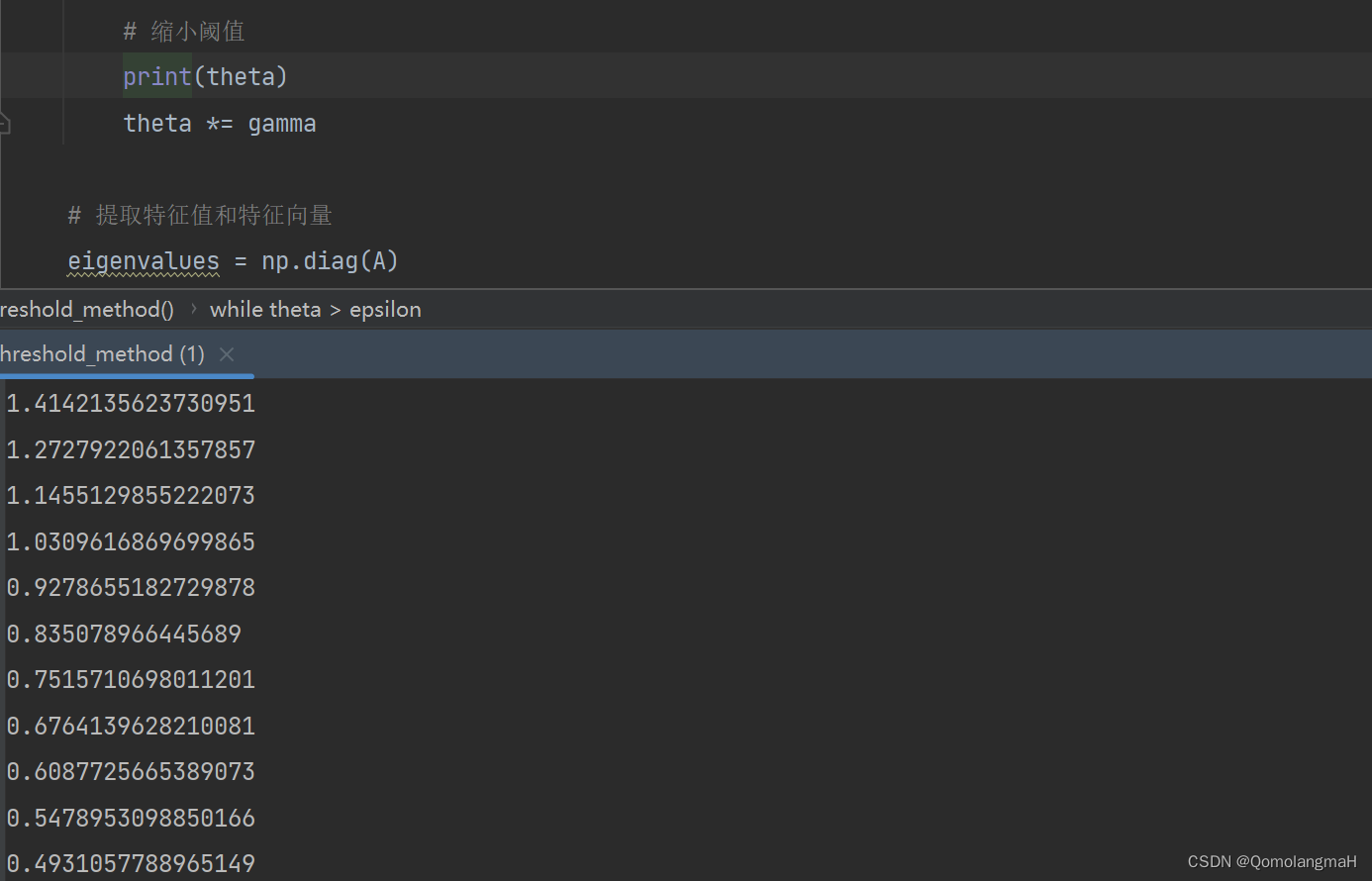 def jacobi_threshold_method(A, epsilon=1e-10, gamma=0.9):