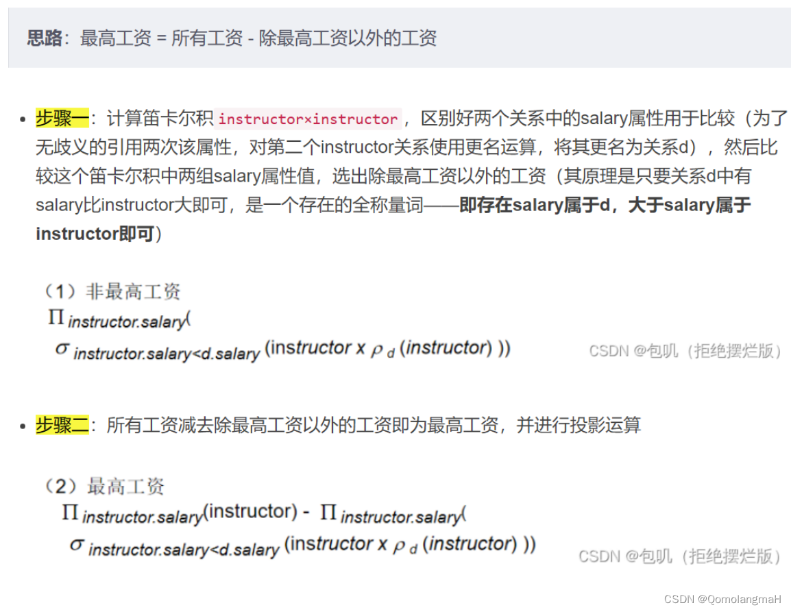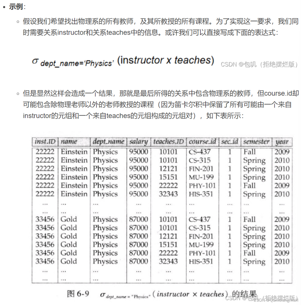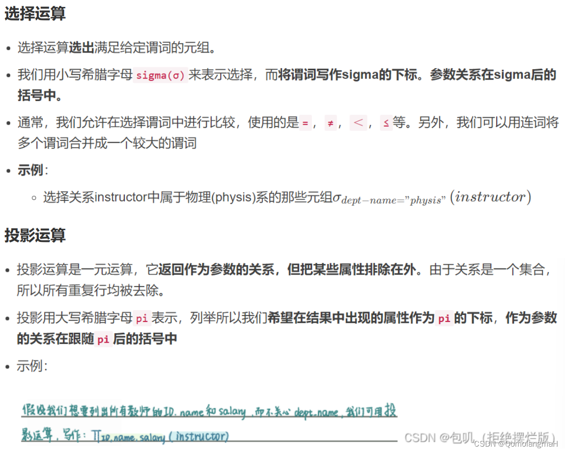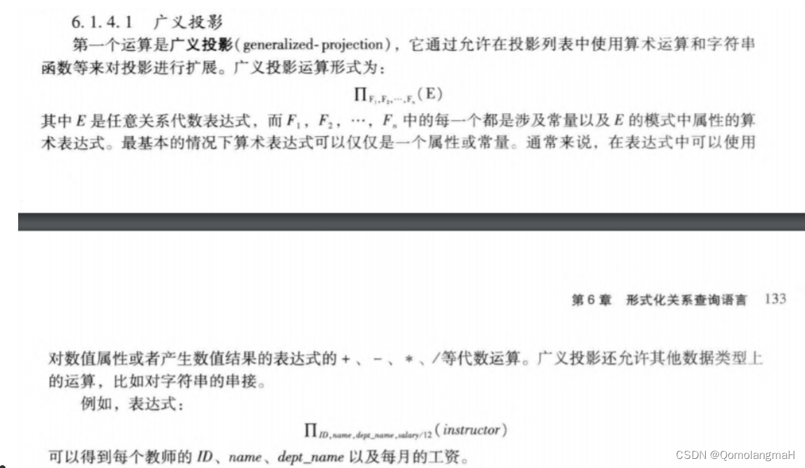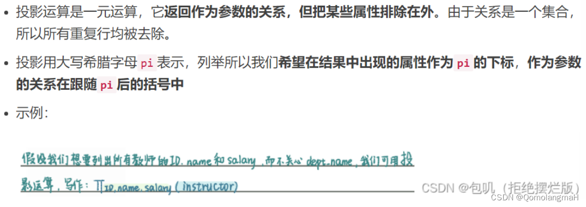 投影运算返回一个关系,而关系是集合,所以返回关系中的重复行均会被去除!!!