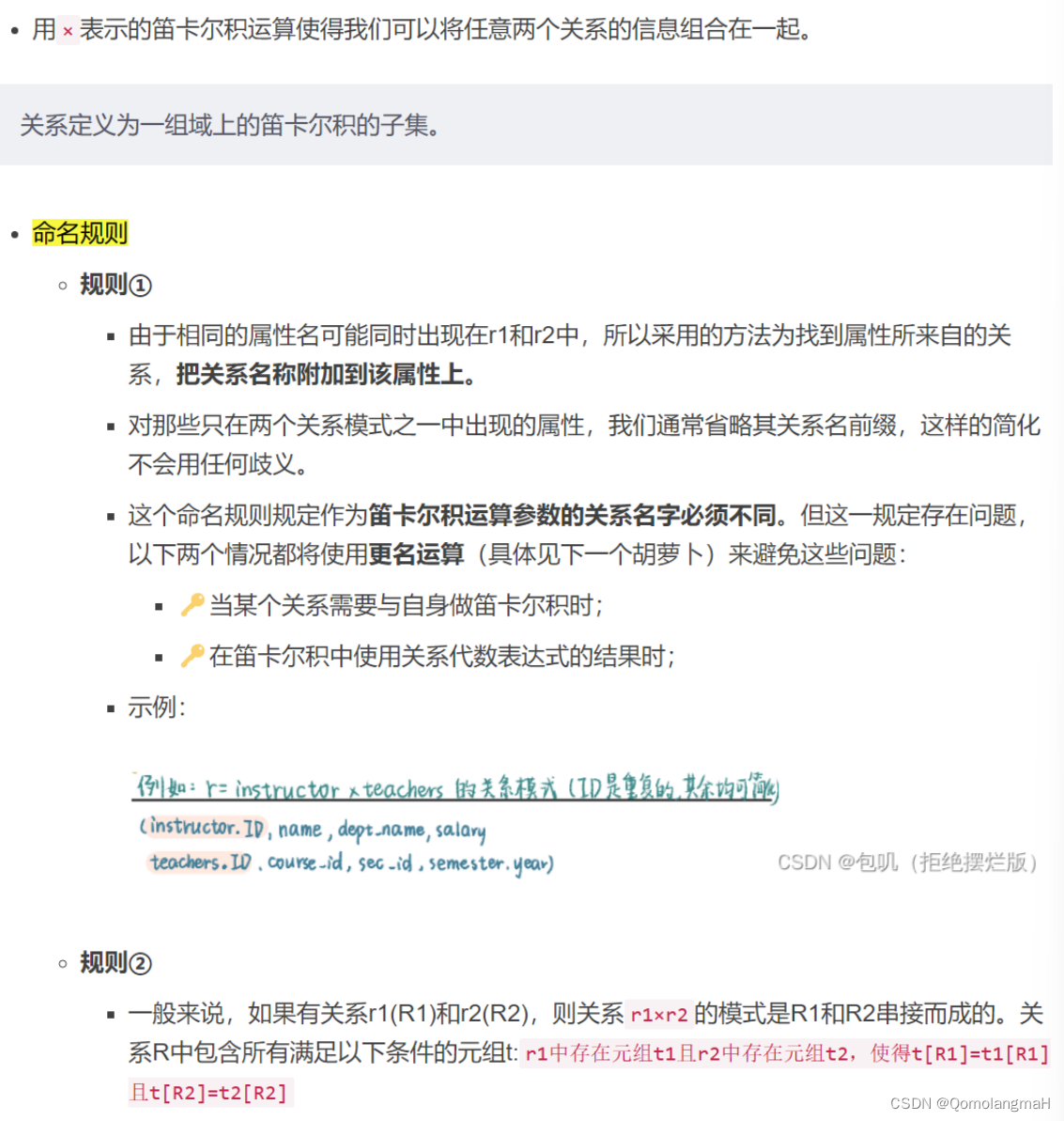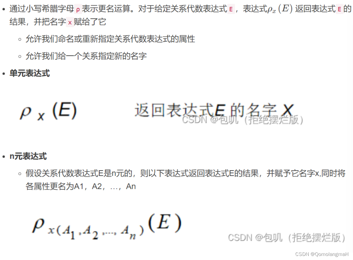 关系代数表达式的结果没有可供我们引用的名字,这一点与数据库中的关系有所不同。如果能给它们赋上名字那将是十分有用的;我们可以通过小写希腊字母