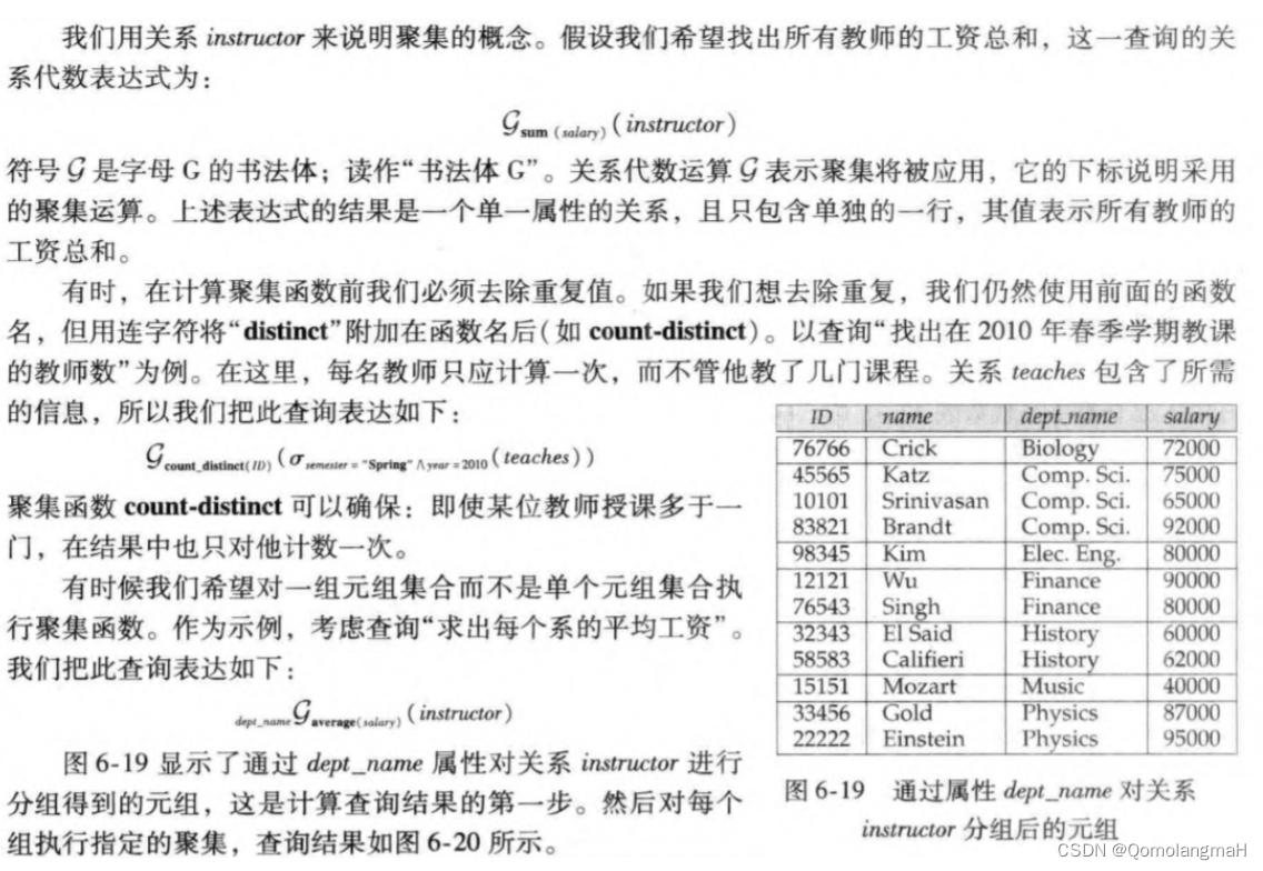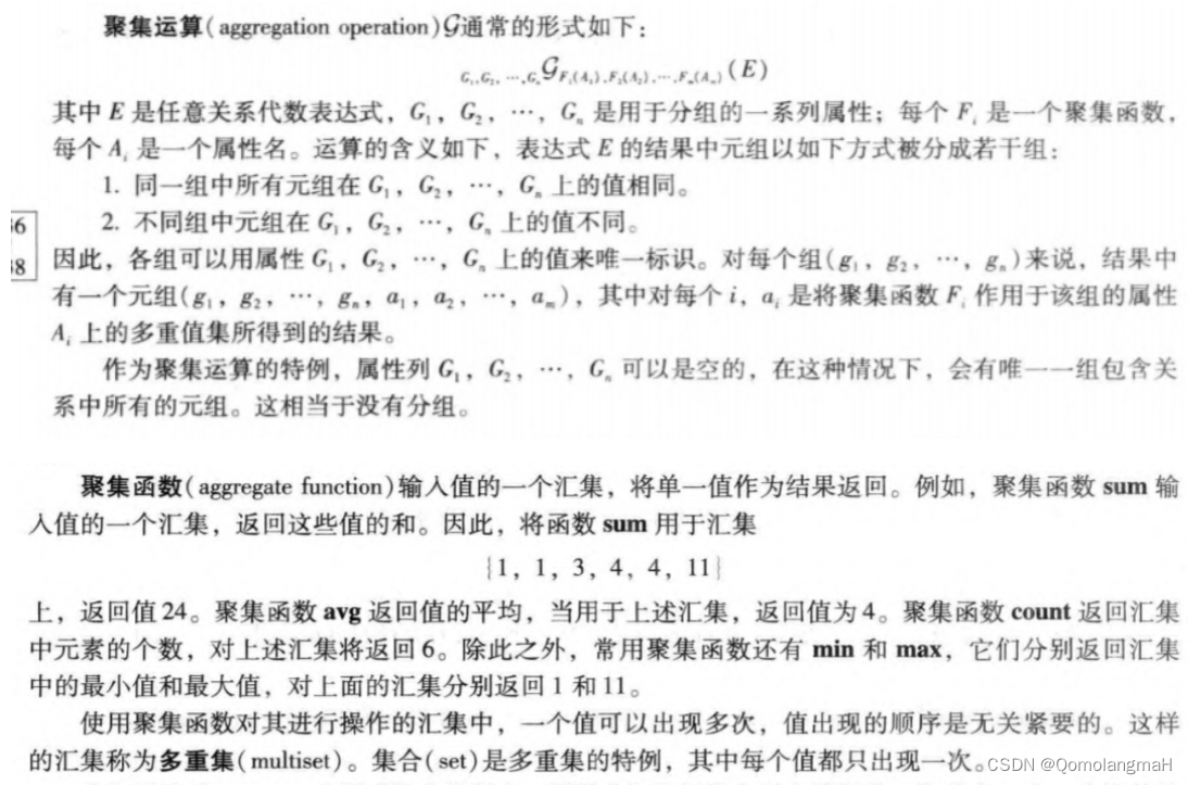 聚集运算实质上是返回输入值的一个汇集,如:sum(求和),avg(求均值),count(求元素个数),min(求最小值),max(求最大值)等