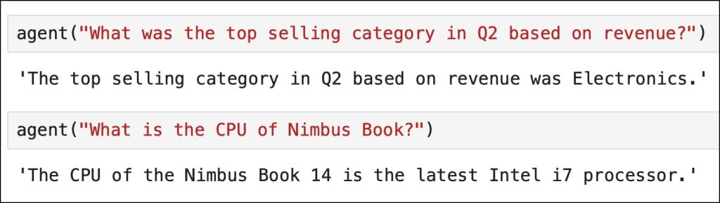 代理代码在 RAG-Agent Jupyter Notebook 中可用。启动它并运行所有单元格以查看它的运行情况。