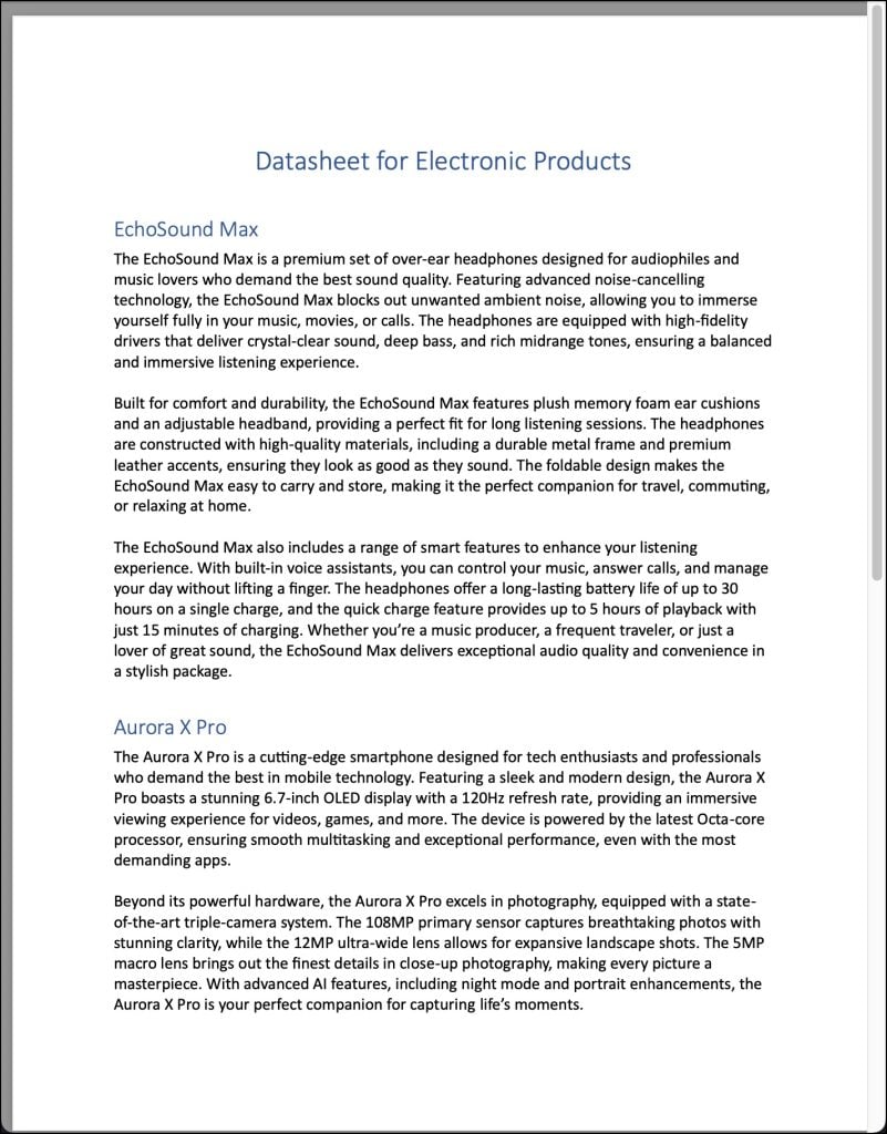 在 data 目录下,您会找到一个 PDF,其中包含电子产品类别中一些产品的描述。我们的任务是索引它并将嵌入向量存储在 Chroma 中。