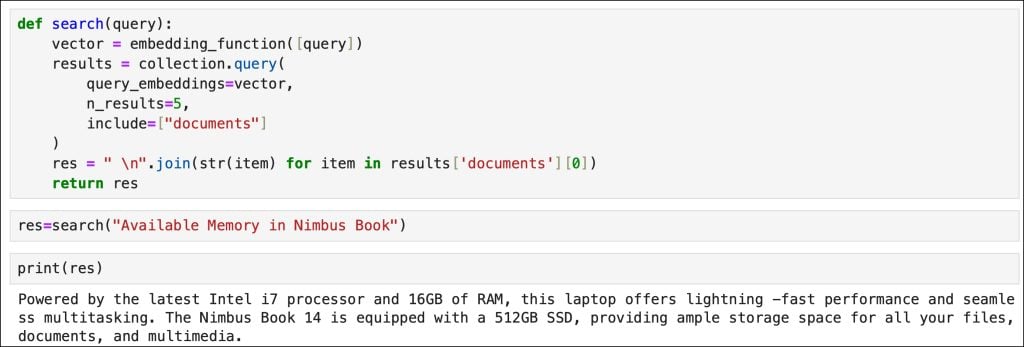 此 Notebook 的最后一个单元格执行简单的语义搜索以验证索引过程。