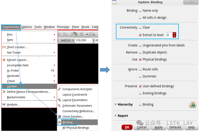 注意:在重新Binding后,请注意查看,layout和schematic之间xl关系的对应情况。如果还是发现xl的关系明显错误,那只能用最后一招了(也就剩最后一招了)。