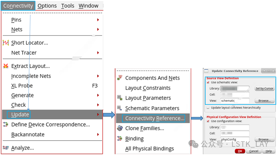 Setup2:打开新库中的layout,按如下方式,重新设置对应参考schematic。