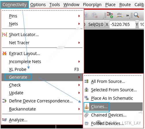 场景描述:某Block原理图基本完成,开始版图layout设计;现需要从原理图中调出对应版图器件。