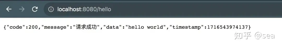 在浏览器中请求地址http://localhost:8080/hello,结果如下: