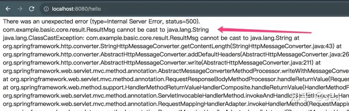 java.lang.ClassCastException: com.example.basic.core.result.ResultMsg cannot be cast to java.lang.String