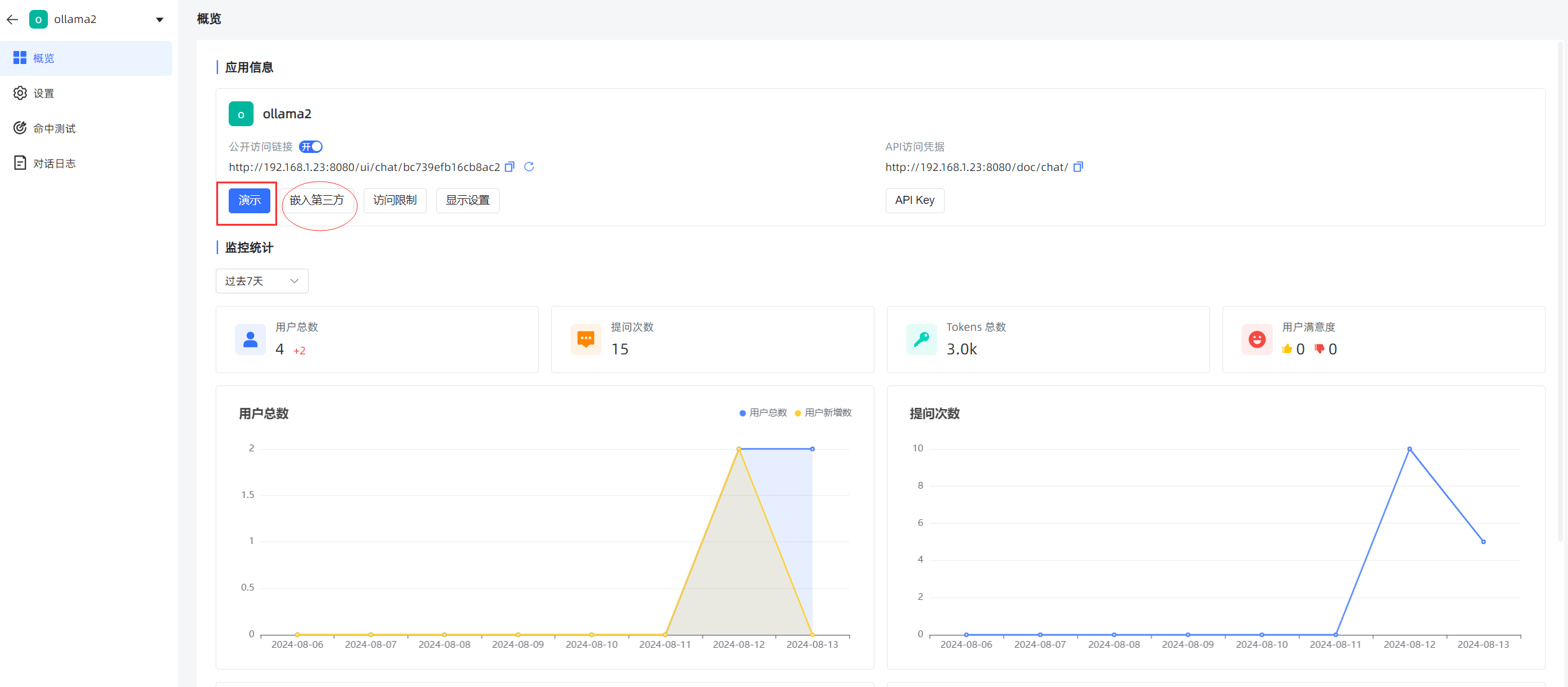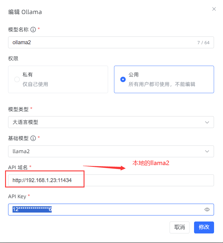 API 域名 填入本机的安装ollama