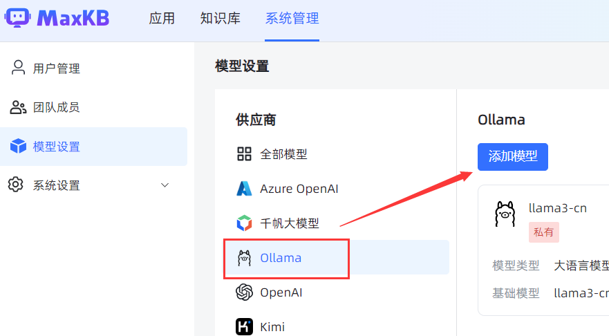 MaxKB还支持与以Ollama为代表的本地私有大模型相结合,快速部署本地的知识库问答系统。