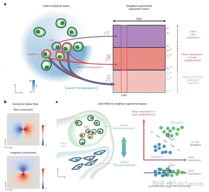 1、改善细胞类型分配 2、区分微环境的不同细胞类型 3、确定共享相同微环境的空间域 4、banksy使用混合参数,权衡细胞转录组矩阵和邻域表达矩阵的贡献,较小的参数设置强调自身的转录组,因此导致细胞根据细胞类型进行聚类。