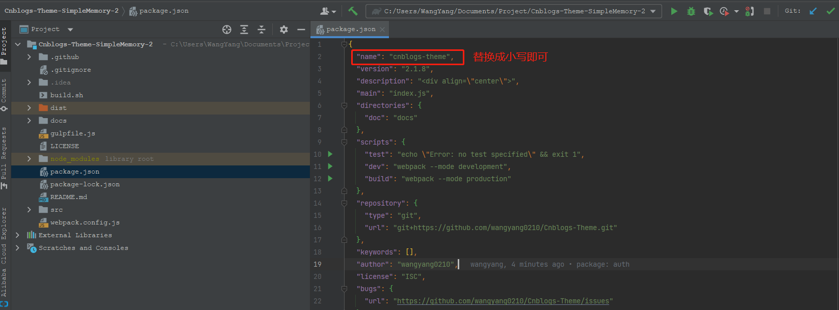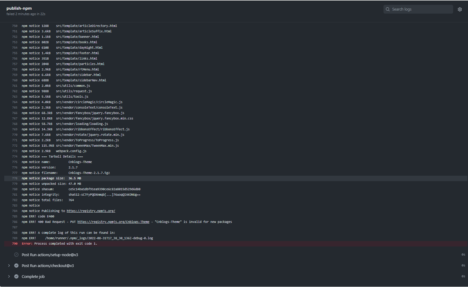 npm ERR! 400 Bad Request - PUT https://registry.npmjs.org/Cnblogs-Theme - "Cnblogs-Theme" is invalid for new packages