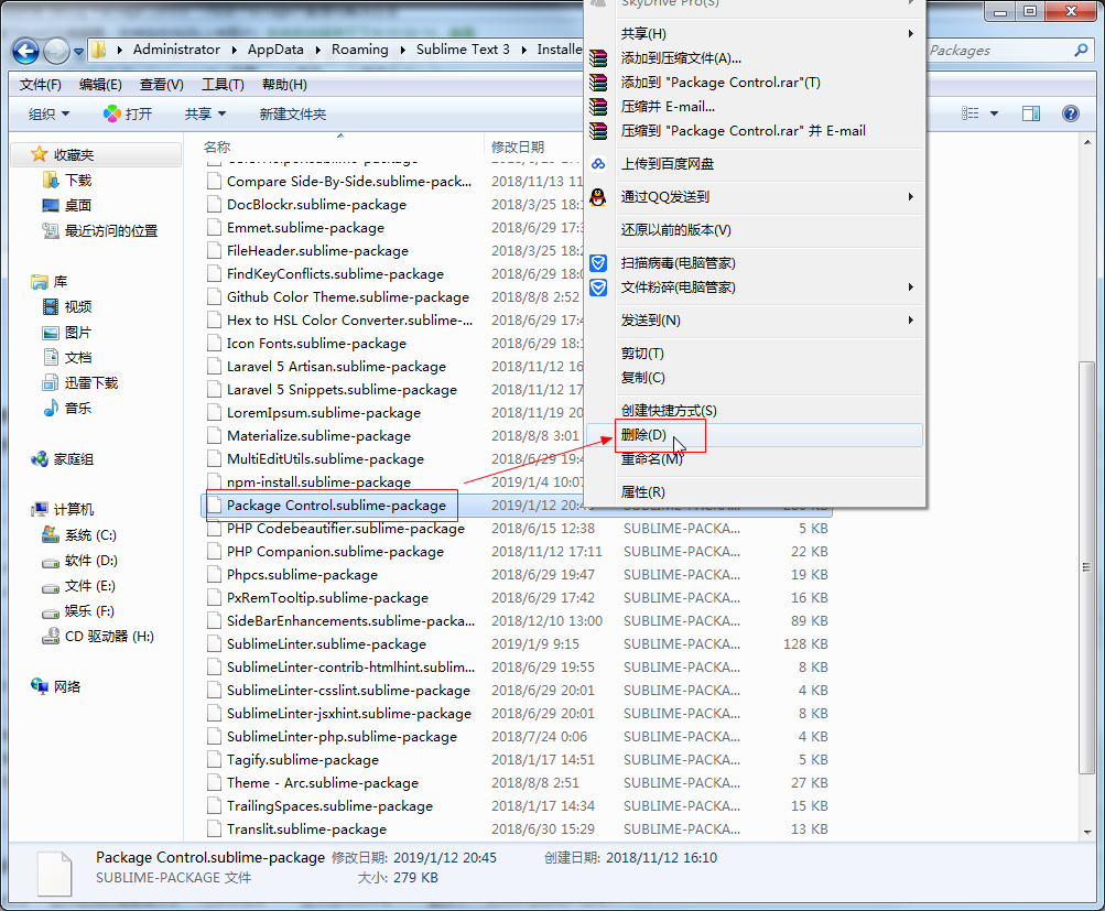 如果有就删除Package Control,没有就不用管了,因为有些插件在自动更新的时候会放入ignored列表,更新完毕之后又挪出来,如果因为网络等原因更新未能完成,