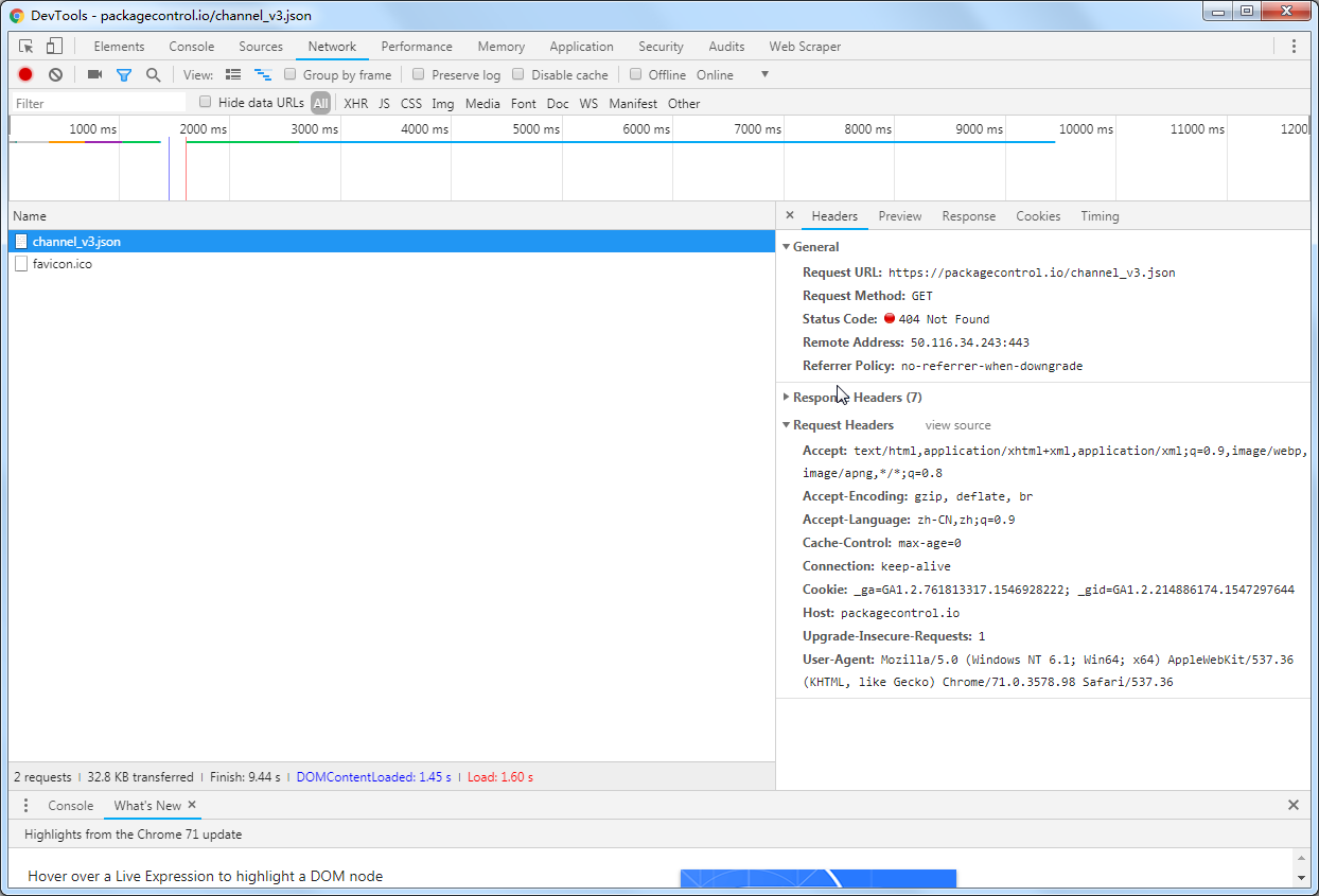 第三个:下载通道出错。在下载https://packagecontrol.io/channel_v3.json发生HTTP 404 错误实际上呢,我没有设置任何代理,所以就有很大的可能是版本问题+网络问题,你可以查看你的日志寻找你的sublime发生错误的原因