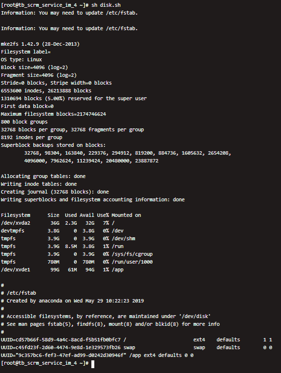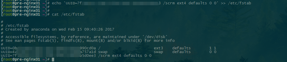 blkid /dev/${diskNumber}1 |awk '{print $2 " /app ext4 defaults 0 0"}' >> /etc/fstab