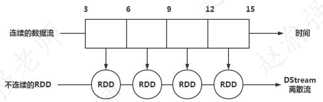 要开发Spark Streaming应用程序,核心是通过StreamingContext创建DStream。因此DStream对象就是Spark Streaming中最核心的对象。DStream的全称是Discretized Stream,翻译成中文是离散流。它是Spark Streaming对流式数据的基本数据抽象,或者说是Spark Streaming的数据模型。DStream的核心是通过时间的采用间隔将连续的数据流转换成是一系列不连续的RDD,在由Transformation进行转换,从而达到处理流式数据的目的。因此从表现形式上看,DStream是由一系列连续的RDD组成,因此DStream也就具备了RDD的特性。