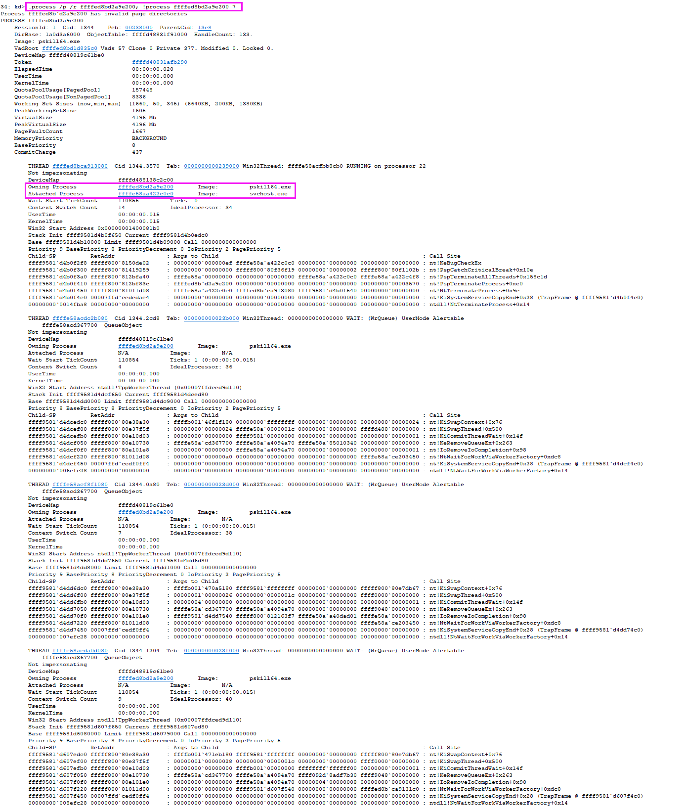 0x1344 0n4932 ffffed8bd2a9e200 pskill64.exe