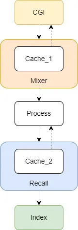 人类的时间太宝贵了。从“奥特曼有多少个”到“核污水有哪些危害”,我们每敲下一个问题,都希望可以马上得到答案,并足够准确,对搜索系统来说是一个极大的挑战。搜索系统往往需要同时与“效率”和“效果”做抗争:“效率”保证尽快返回查询结果;“效果”保证将最匹配的结果放在最前面。假如我们有无限资源,自然可以部署最优质的链路和模型,通过持续的计算为用户带来最好的搜索体验;然而,系统资源往往是有限的,cpu、gpu 等资源应该花费在更值得的计算上。因此,我们需要在“效率”和“效果”中进行博弈,让两者的天秤达到一个平衡。而缓存作为一种优化技术,正是调节两者平衡的一个重要砝码。如图,是一个简单的缓存架构设计: