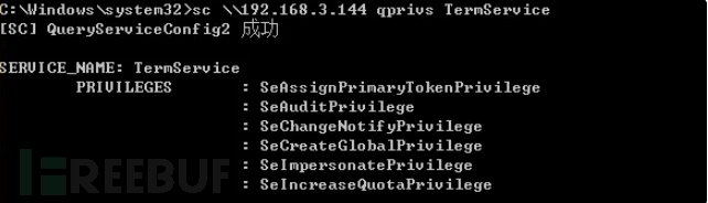 通过查询大量的资料,发现在使用sc命令时,有两个个鸡肋就是不允许将bat做成服务运行,一般的exe也都不行,因为做成服务的可执行文件,它的代码编写是有固定格式的,这个exe程序服务需要提前准备好,因为要根据自己的需求编写。这一点一定要切记,在进行横向渗透测试时经常会忽略这样的一个小细节。 可是我既然不会写这样的服务,那我可不可以使用命令来验证sc命令是可行的呢?通过测试果真可以,如查询192.168.3.144的远程桌面连接服务的管理权限 sc \\192.168.3.144 qprivs TermService