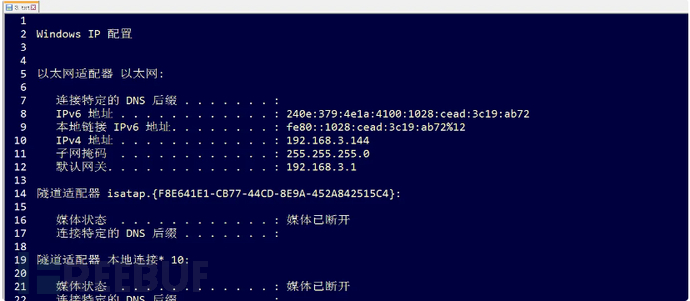 在使用自带的wmic时,无回显,ipconfig这条命令显示的内容保存在3.txt文件中,并且是在对方的主机中,较为鸡肋。