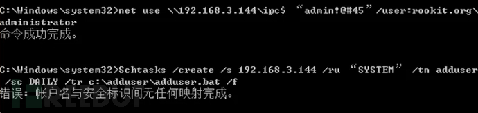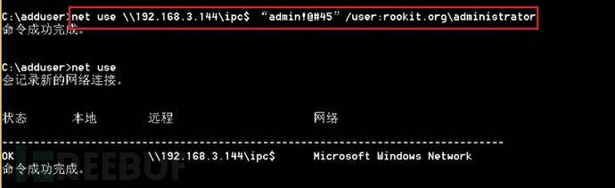 net use \\192.168.3.144\ipc$ "admin!@#45"/user:rookit.org\administrator